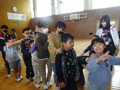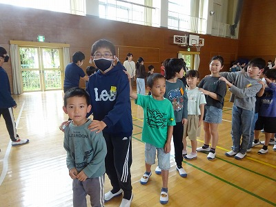 4月22日(月)1年生を迎える会 公開日 2024/04/22 更新日 2024/04/22 学校日誌 全校朝会のあと『1年生を迎える会』が行われました。1年生が旭南小学校で楽しく過ごせるよう、ペアのお兄さん・お姉さんと協力して、旭南小学校クイズやじゃんけん列車をして楽しみました。全校児童が一斉に顔を合わせることができて、笑顔いっぱいの素敵な会になりました。