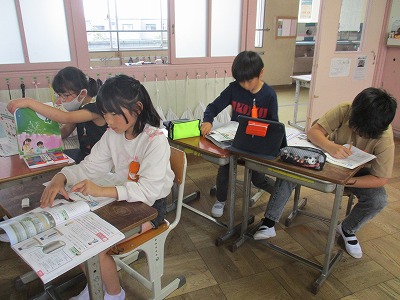 4/23(火)天気による気温の変化【4年】 公開日 2024/04/23 更新日 2024/04/23 学校日誌 4年生の理科では、天気と気温の関係について学習しています。この単元では、算数で学習する「折れ線グラフ」を使って考察することが多くあります。この単元での折れ線グラフの使い方について、教科書やノートで確認しています。