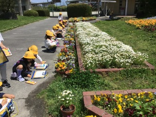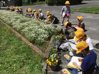 1年生は図工でお花の絵をかきました。