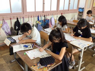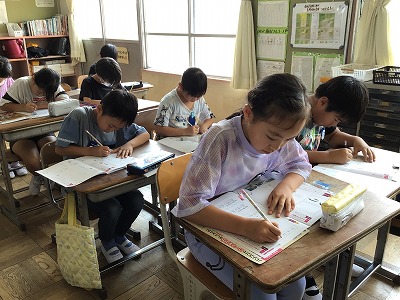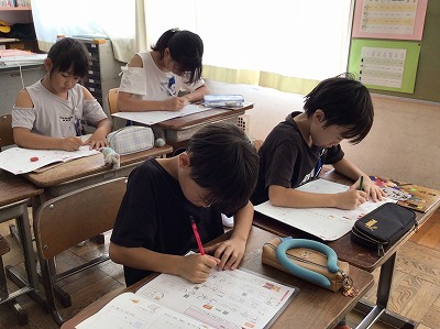 9/4(水)「おれ」と「はね」【3年】 公開日 2024/09/04 更新日 2024/09/04 学校日誌 今日の書写は、硬筆です。今回の課題は「おれ」と「はね」です。鉛筆を止めて、方向を変えたり、はねたりすることがポイントです。集中して練習に取り組んでいます。