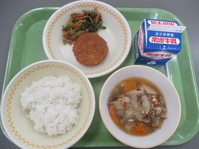 和風コロッケには、れんこんが入っています。れんこんが入ることで食感が楽しくなり、優しい甘みも感じられました。児童にも好評で「今日のコロッケおいしい」とたくさん声をかけてもらいました。
