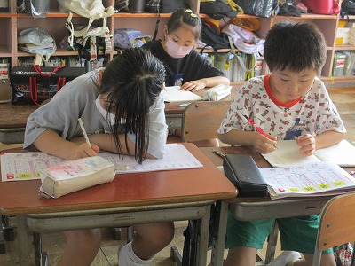 新しい漢字として、今日は「橋」「寒」「暑」の3つの学習をしました。漢字ドリルを使って練習しています。国語辞典を使って調べたり、早く終わったらノートに練習したりと、それぞれのペースで進めています。