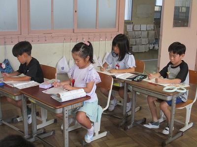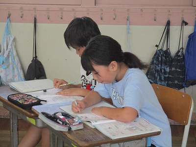 9/6(金)3つの数のたし算の筆算【2年】 公開日 2024/09/06 更新日 2024/09/06 学校日誌 算数の授業で、筆算で3つの数のたし算をしていました。たす数が3つになりますが、2つの数のときと同じように、一の位から順に計算します。集中して丁寧に計算しています。