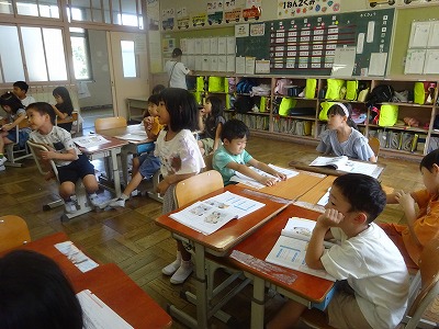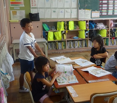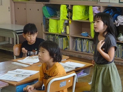 9月9日(月)どうとく【1年】 公開日 2024/09/09 更新日 2024/09/09 学校日誌 1年生の道徳の様子です。友達の家に遊びにいった時の行動について、資料を読みながらみんなで考えました。「ちゃんとあいさつをする」「おやつをもらったらありがとうとお礼を言う」「帰るときもありがとうを言う」など、心が温かくなる意見がたくさんでてきました。友達の家に行ったら、ぜひ実践できると良いですね。