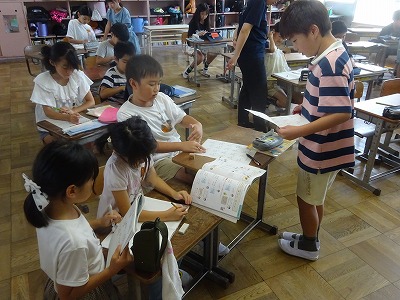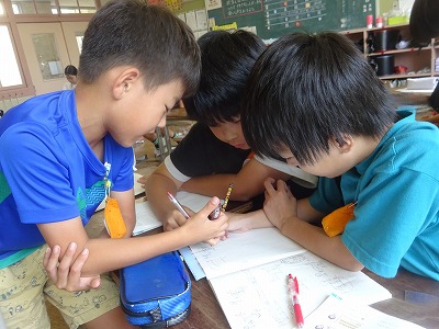 4年生の算数では、3ケタ÷2ケタのわり算を学習しています。今日は筆算を使って基本的な解き方を学習した後、あまりが出る問題に取り組んでいました。友達と教え合いながら、みんなで計算力を高めています。
