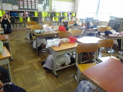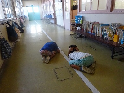 放課に地震が起こったことを想定して、放課時避難訓練を行いました。揺れがおさまるまで「姿勢を低く、頭を守り、じっとする」のダンゴムシポーズをしっかりとることができていました。本当の地震が起こっても、今日のように落ち着いて行動しましょう。