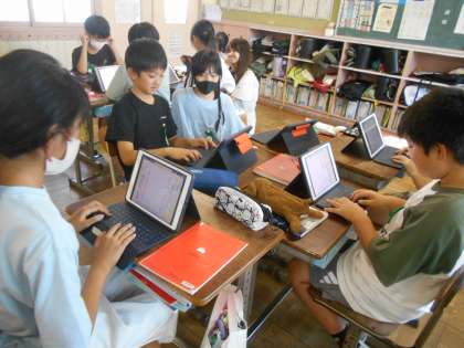9/12(木)どちらを選びますか?【5年】 公開日 2024/09/12 更新日 2024/09/12 学校日誌 5年生の国語では、「どちらを選びますか?」という単元で、対話練習の授業をしていました。グループになり、相手から出ると予想される質問を考えました。実際に対話するための準備が大切ですね。