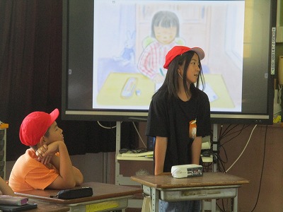 道徳の授業で、「絵はがきと切手」という教材を使って、「友情」をテーマに話し合いをしていました。この教材では、離れた友人から、料金不足の絵葉書が届きます。「料金不足の事実を、その友人に伝えるべきかどうか」について、自分の立場を明確にし、赤白帽でみんなにも分かるようにして話し合いをしています。いろいろな友達の考えに触れ、「なるほど〜」「そうか・・・」などのつぶやきが聞こえます。考えが深まっていますね。