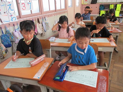 「安全な生活を送ろう」の保健目標に合わせて「ろうかは右がわをあるこう」などと書いていました。暑い日が続いていますが、健康で元気に過ごしましょう。