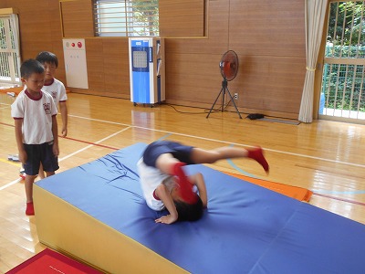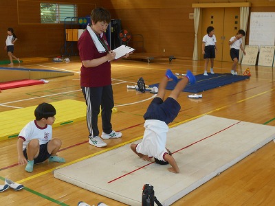 9/17(火)マット運動【2年】 公開日 2024/09/17 更新日 2024/09/17 学校日誌 2年生の体育「マット運動」では、これまで練習してきた技のテストをしていました。先生の前では緊張していましたが、しっかり練習してきたので思い切って披露する子どもが多かったように思います。