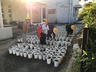 メイン花壇への苗植えが始まっています。今日はボランティアの子どもたちも一緒に苗を植えてくれました。きれいな花がいっぱい咲きますように。