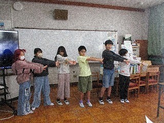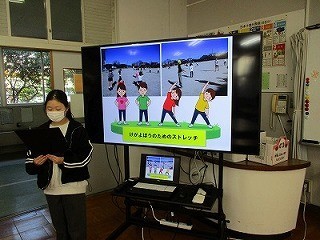 「げんきしらべ」の実態発表の後、感染症クイズやけが予防のストレッチなどに各教室で楽しく取り組みました。