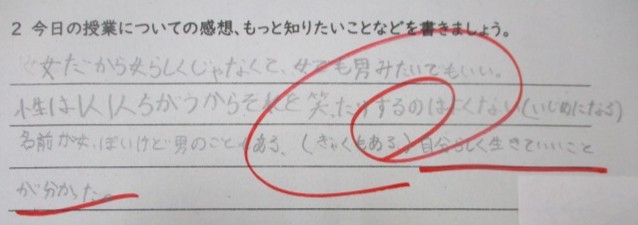 子どもたちは、自分を含め、一人一人の考え方を尊重し、自分らしく生きることについて考えを深めました。