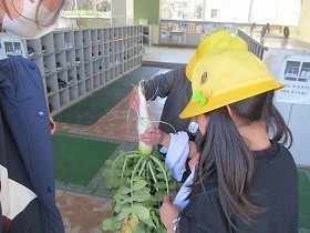 2年生は、これまで育てた大根を収穫しました。