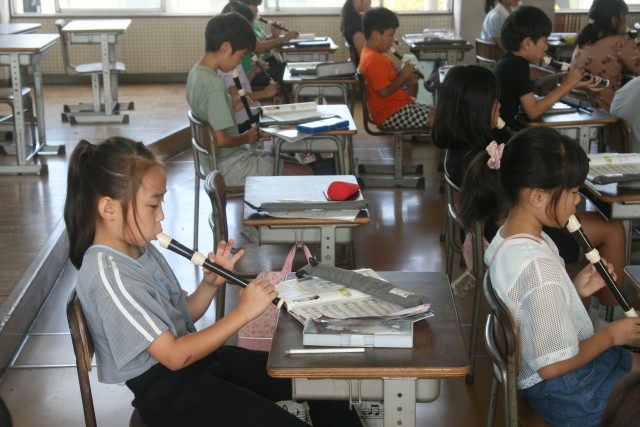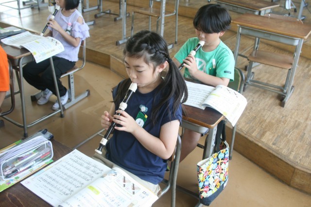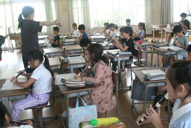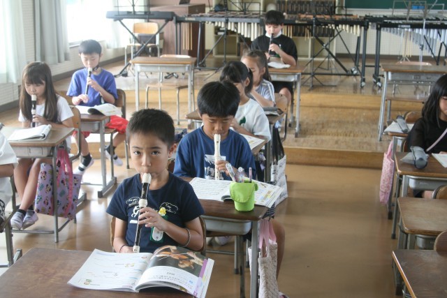レッツゴーソーレー(3の1) 公開日 2025/09/24 更新日 2025/09/24 3年生 3年生の音楽の時間・・・リコーダーで、「レッツゴーソーレー」を演奏しました。みんなで合わせるのが、とても難しそうでしたが、音が合うと、うれしそうな表情をしていました! +4
