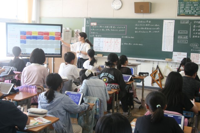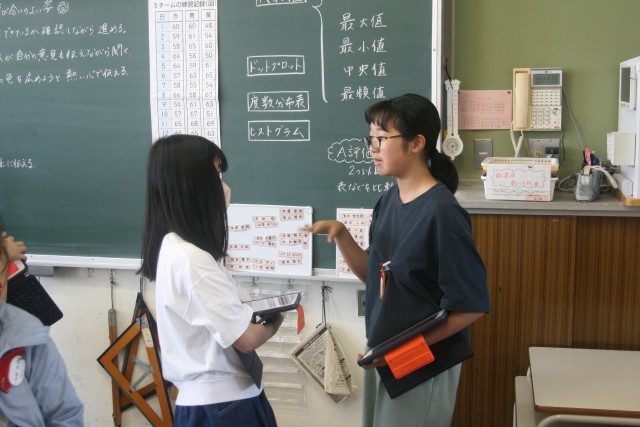 データの整理と活用(6の1) 公開日 2025/09/26 更新日 2025/09/26 6年生 6年生の算数の時間・・・平均値・最大値・最小値・中央値・最頻値といったデータを分析し、青・赤・黄のどのチームが優れているのか? 根拠をもって自分の考えをつくりました。はじめの授業と比べて、赤チームが優れていると考える人が増えてきました! +4
