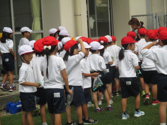 どんな いろみずが できるかな(1年生) 公開日 2025/09/29 更新日 2025/09/29 1年生 くさばなで いろみず づくりに ちょうせん します。きょうは その ざいりょう あつめを しました。あつめた くさばな から どんな いろの いろみずが できるか たのしみ ですね。