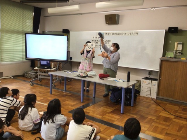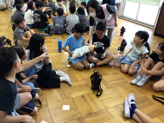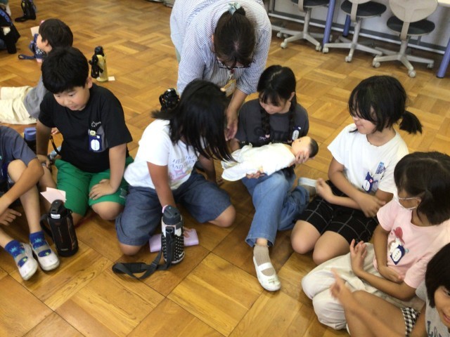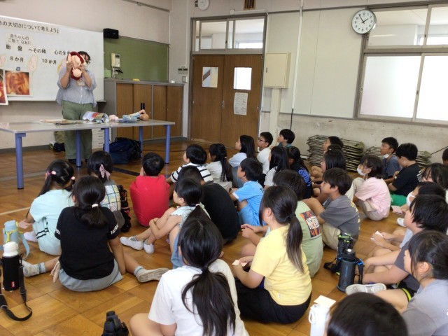 いのちの授業(4年生) 公開日 2025/09/29 更新日 2025/09/29 4年生 保健センターの助産師さんに「いのち」の授業をしていただきました。命の始まりについてやお母さんのおなかの中でどのように成長するのか、など模型や画像などを見ながら学習しました。最後には、赤ちゃん人形を抱っこして、赤ちゃんの重みを実感しました。みんな、自然に優しい表情になっていました。 +4