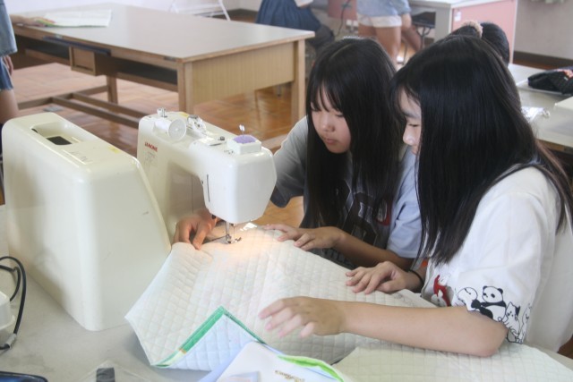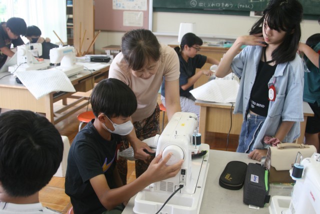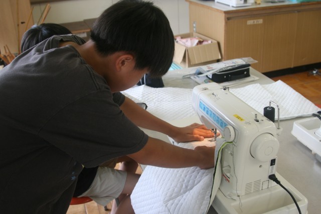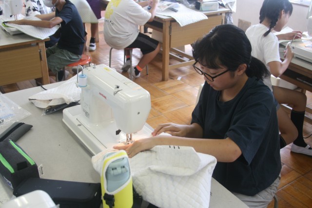試し縫いで糸の調整をして、慎重に縫っていました。