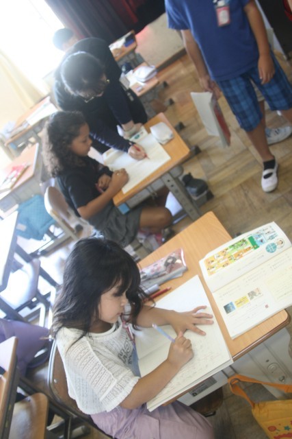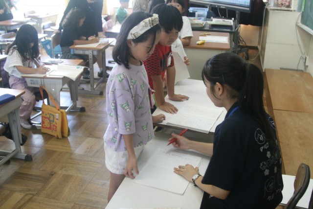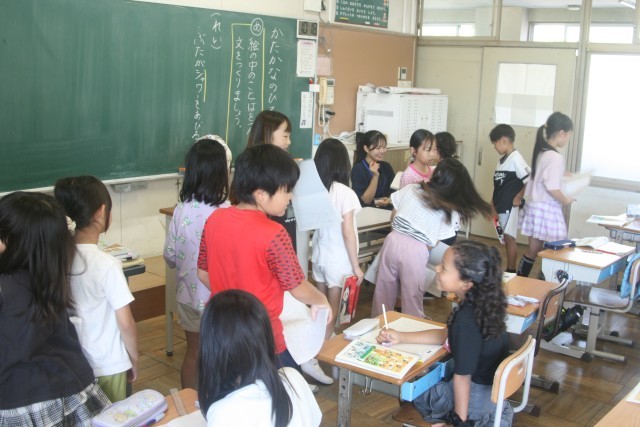 かたかなのひろば(2の2) 公開日 2025/10/06 更新日 2025/10/06 2年生 2年生の国語の時間・・・絵の中のカタカナをつかって、文章をつくりました。できた文章を、教育実習の先生に見てもらっています! +4