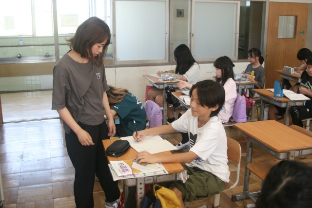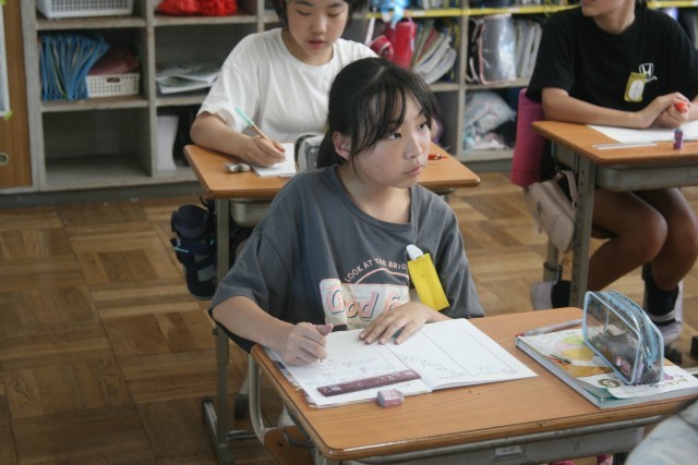 小数を分数で表そう(5の2) 公開日 2025/10/06 更新日 2025/10/06 5年生 5年生の算数の時間・・・0.1は 1/10 では、0.7は?0.01は 1/100 では、0.13は?0.001は 1/1000 では、0.009は?なかなか、頭の中で変換することが難しかったようでした。でも、先生のヒントで、なんとなくわかってきました! +5