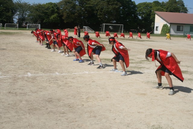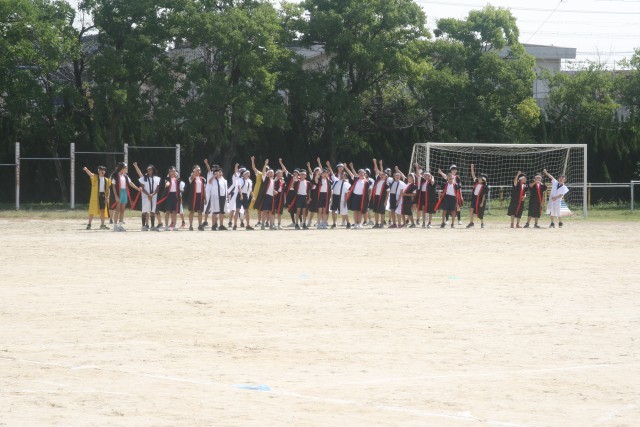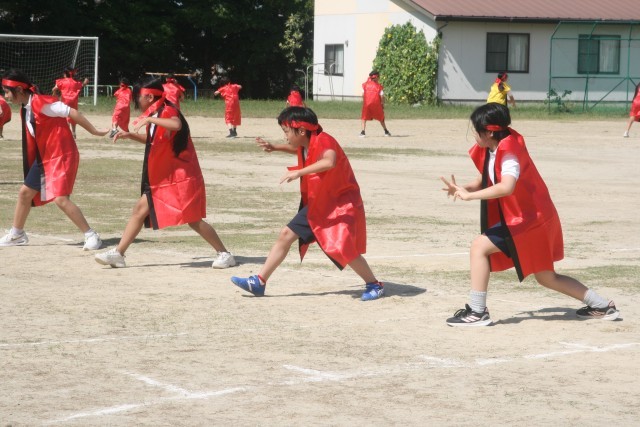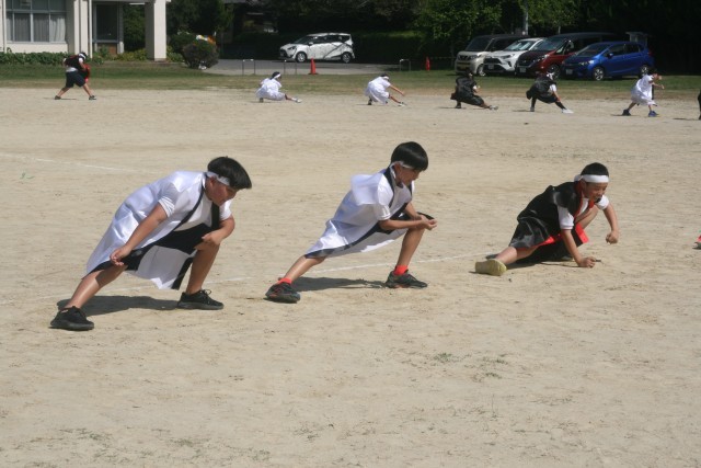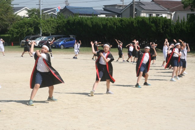 ソーラン節(5年生) 公開日 2025/10/08 更新日 2025/10/08 5年生 5・6年生合同の運動会練習・・・「ソーラン節」をはっぴを着て行いました。口元がキュッと引き締まり、かっこいいですね!本番が楽しみです! +5