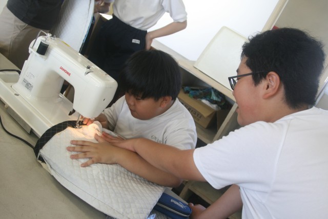 ミシン(6の1) 公開日 2025/10/08 更新日 2025/10/08 6年生 6年生の家庭科の時間・・・完成をめざして、ミシンで続きを縫っていました。ミシンの扱いにも慣れてきたようで、てきぱきと活動していました。 +4