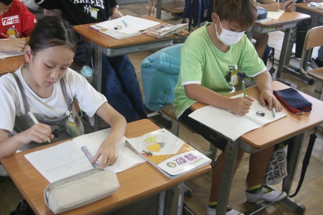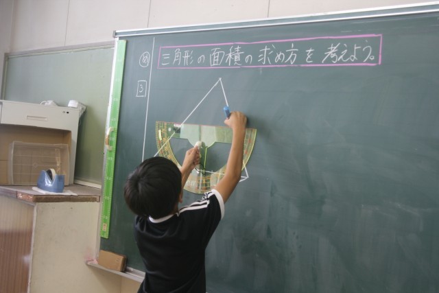 三角形の面積(5の1) 公開日 2025/10/14 更新日 2025/10/14 5年生 5年生の算数の時間・・・三角形の面積を求めるのに、どんな方法があるのか?たくさんの方法を自分たちで考えました。 +5