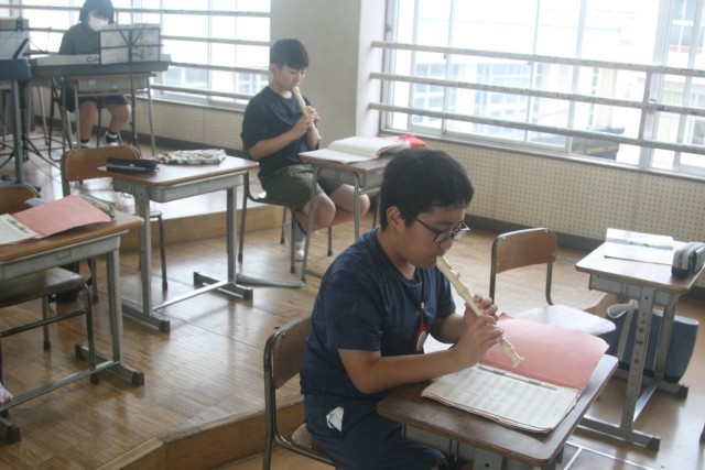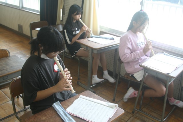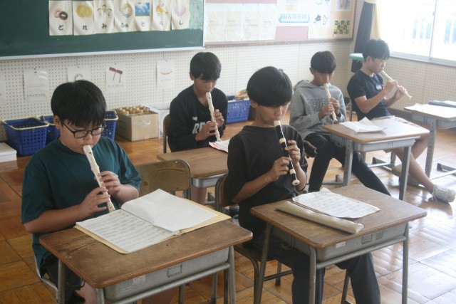 カノン(6の1) 公開日 2025/10/16 更新日 2025/10/16 6年生 6年生の音楽の時間・・・「カノン」をリコーダーや木琴等で練習しました。早く合奏をしてみたいですね。あと少し、個人練習をして、いざ合奏へ! +7