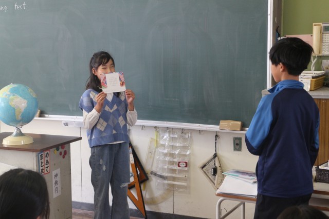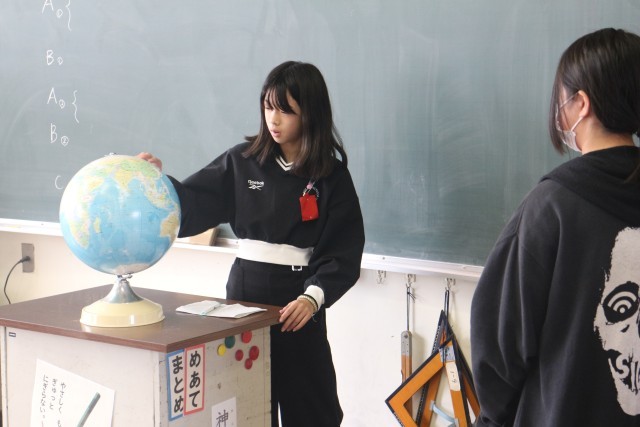地球儀を使ってその国がどこにあるのか紹介する子もいました。