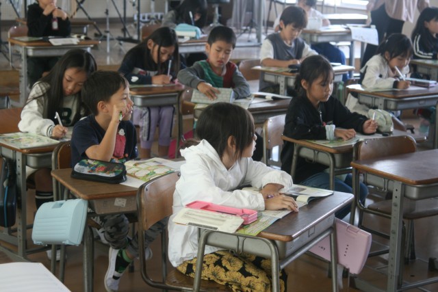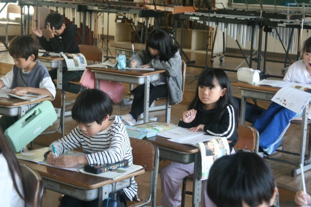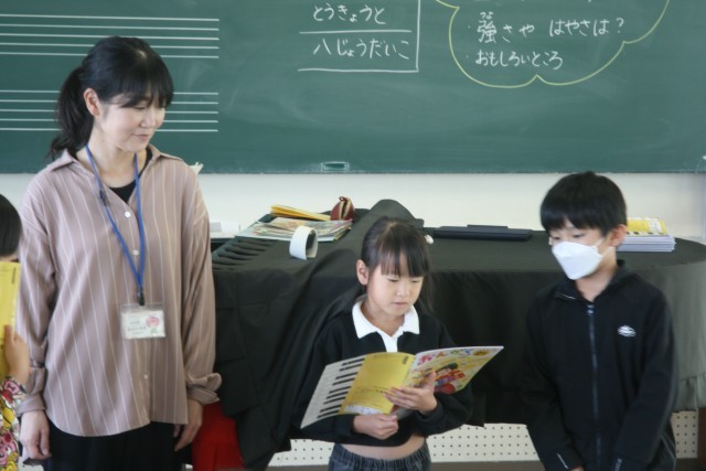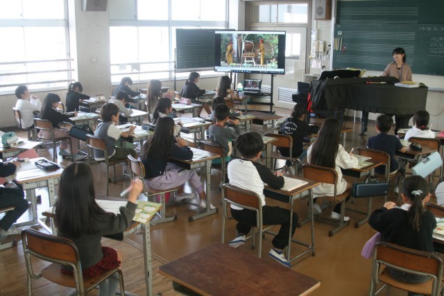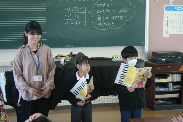 八丈太鼓(2の1) 公開日 2025/10/27 更新日 2025/10/27 2年生 2年生の音楽の時間・・・八丈太鼓の鑑賞をしました。動画をみて、感想を発表しました。こんなところがおもしろいと思った・・・持っているバチの長さが違っている・・・よ~く見ていたようですね! +6