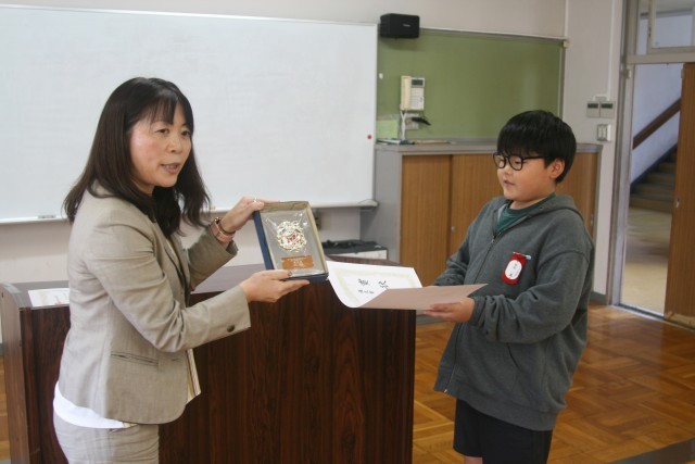 図書館を使った調べる学習コンクールで優秀だった子の表彰