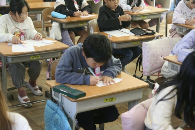 書写(2の2) 公開日 2025/10/28 更新日 2025/10/28 2年生 2年生の書写の時間・・・尾張書写作品コンクールに向けて、清書をしました。大きく!とめ・はね・はらい に気を付けて!真剣に書いていました。 +5