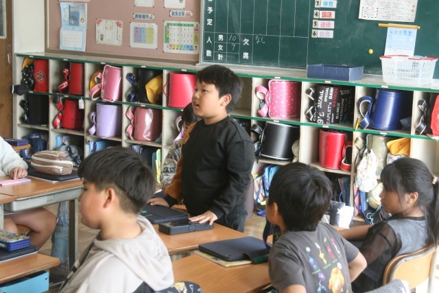 どうしよう(3の1) 公開日 2025/10/30 更新日 2025/10/30 3年生 3年生の道徳の時間・・・「どうしよう」本を汚してしまったことを 先生に 言う? 言わない?激論を交わしていました。本音が少しずつでてきて、楽しい授業となりました。 +4