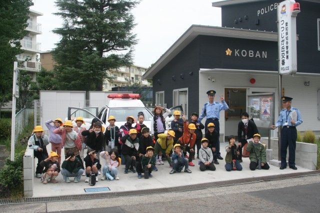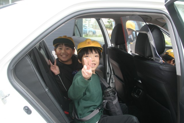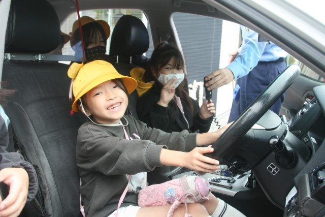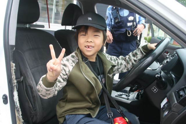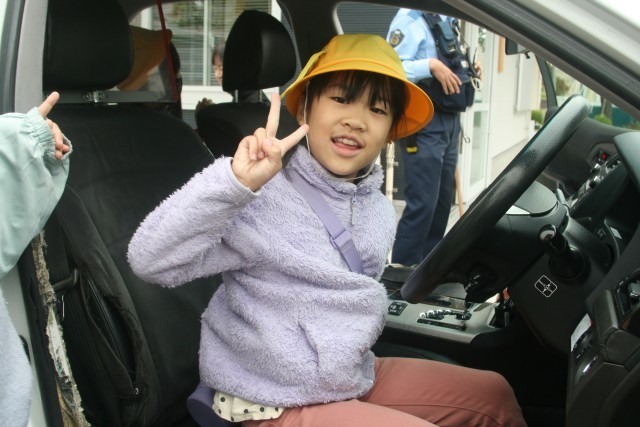 交番の中に入らせてもらったり、パトカーに乗らせてもらったりと、
