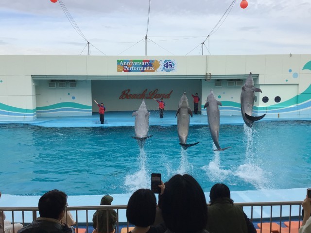 食後は、いよいよ、アシカ・イルカショーの時間です。アシカの泳ぎのスピードやイルカのジャンプ力にびっくり!