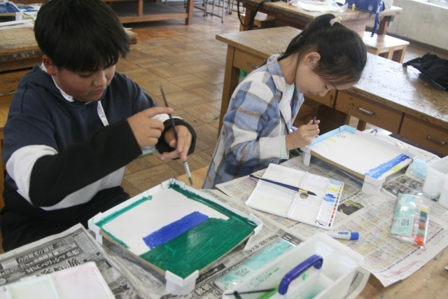 マグネットマジック(3の1) 公開日 2025/11/05 更新日 2025/11/05 3年生 3年生の図工の時間・・・「マグネットマジック」の制作に取りかかりました。イメージを膨らませ、おもいおもいの色で着色していきます。海で魚を動かすのかな?完成が楽しみです。 +5