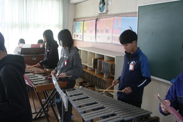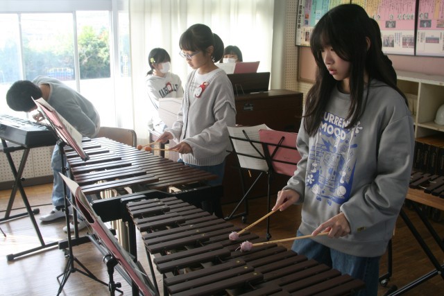 L-O-V-E(6の1) 公開日 2025/11/06 更新日 2025/11/06 6年生 6年生の音楽の時間・・・「L-O-V-E」の合奏に向けて、さまざまな楽器にわかれて、個別練習をしました。同じ楽器ごとに、教え合いながら進めています。 +5