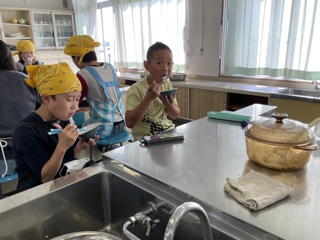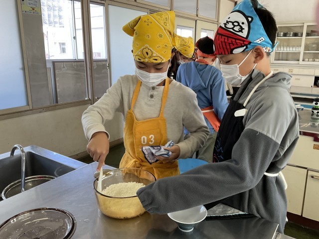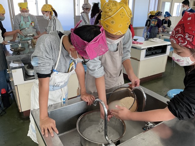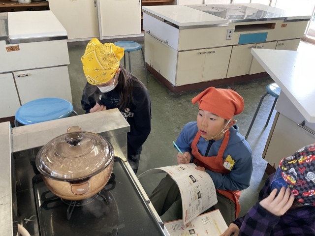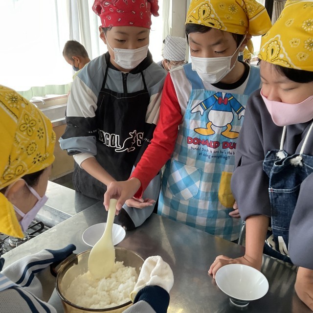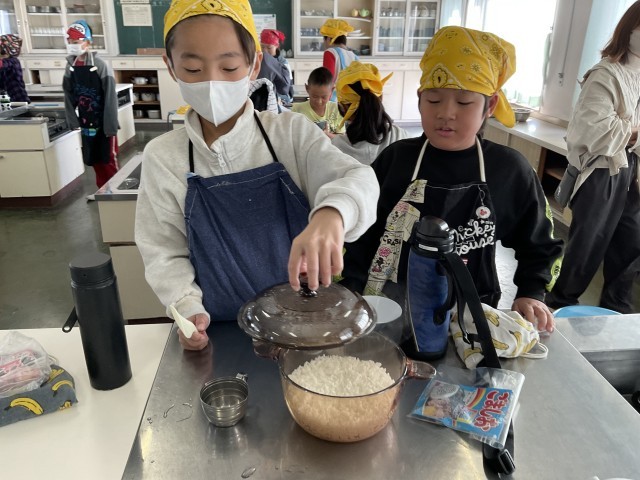 おいしいご飯をたこう(5の2) 公開日 2025/11/07 更新日 2025/11/07 5年生 お米を洗って、水の分量を間違えないように。はじめは強火。 だんだん、水分がなくなってきた。蒸らす時間も、そろそろいいかな? おいしく炊き上がったようです。炊きたては、やっぱり、おいしいね。 +4