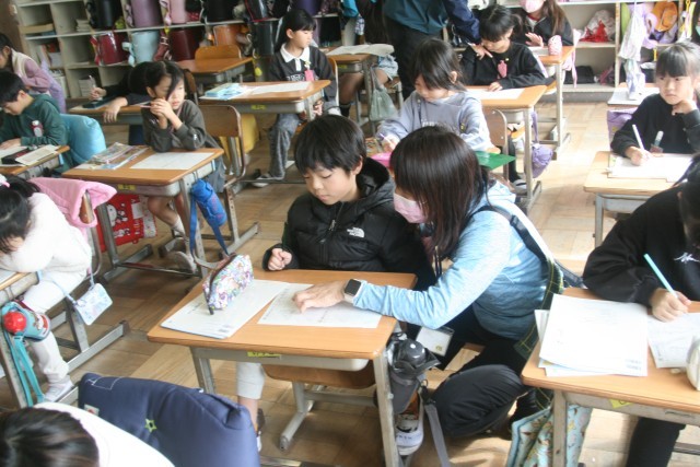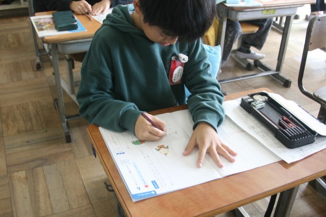 書写(2の1) 公開日 2025/11/13 更新日 2025/11/13 2年生 2年生の書写の時間・・・ていねいに ていねいに 書きました。課題が終わった子は、「文字のかいだん」プリントに取り組んでいました。文字数の決まった言葉を探すのは難しそうですね! +5