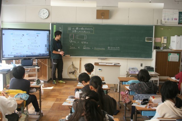 がい数のかけ算(4の2) 公開日 2025/11/14 更新日 2025/11/14 4年生 がい数にしてから、かけ算をすると計算も簡単になりますね。でも、大きな数のときには、0(ゼロ)の数に気をつけて!自分のペースで、一人で、友だちと、先生と・・・。課題を解決するために、自分に合った学び方をしていました。 +5