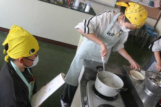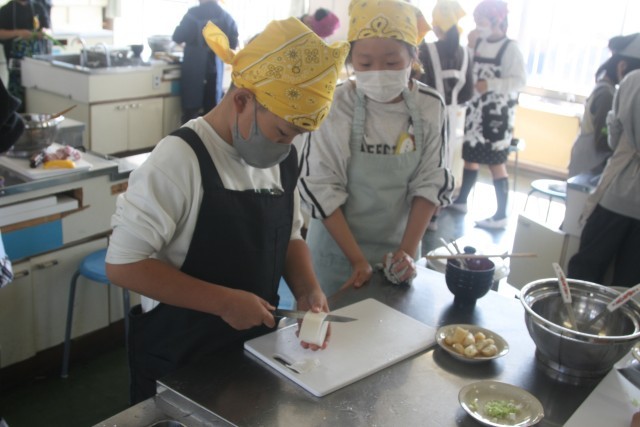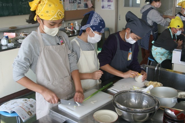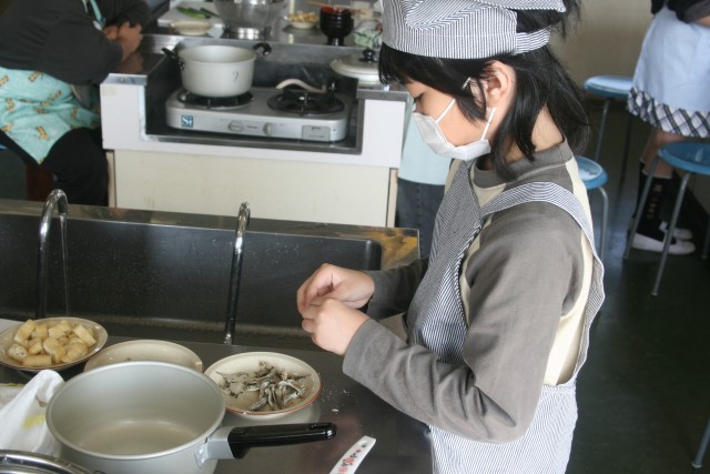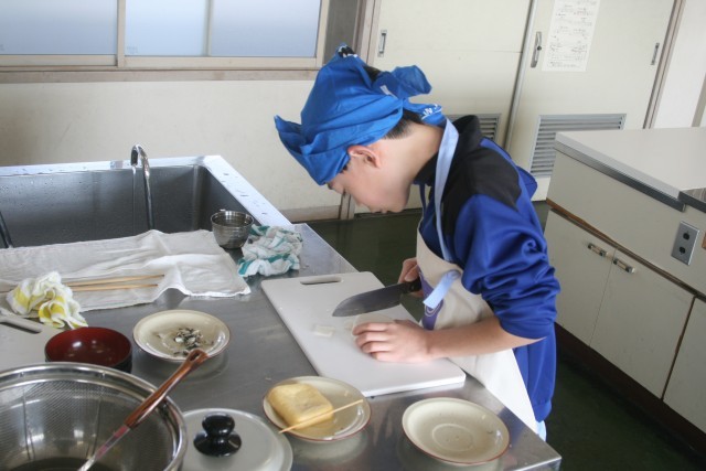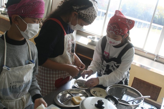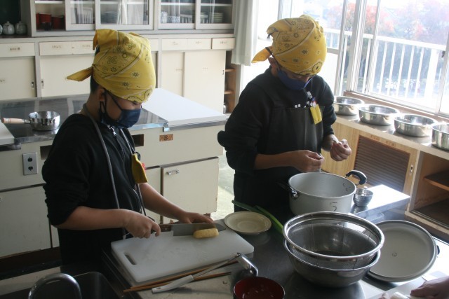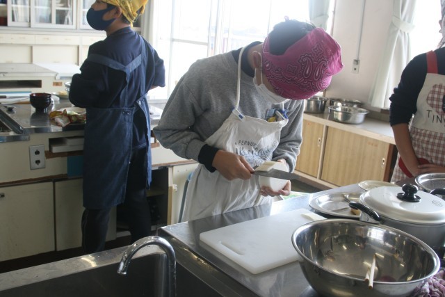 班のみんなで協力して、食器を洗ったり、食材を切ったりと