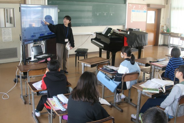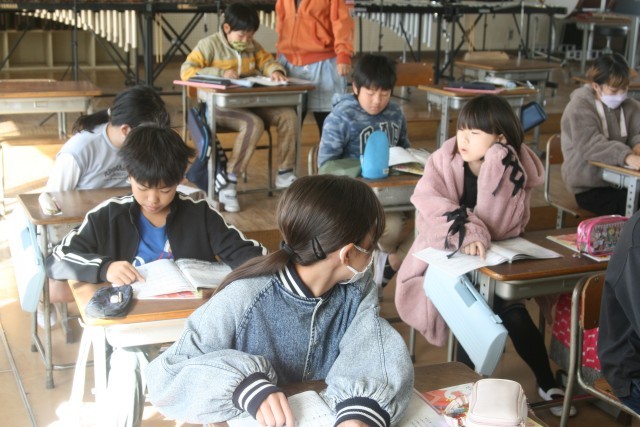 冬げしき(5の2) 公開日 2025/11/18 更新日 2025/11/18 5年生 5年生の音楽の時間・・・「冬げしき」の歌を覚えようとしていました。歌詞の季節は冬の初め頃、1番は水辺の朝、2番は田園の昼、3番は里の夕方が描写されているとても 美しい歌ですね! +5