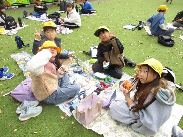 校外学習(東山動物園)に行きました!② 公開日 2025/11/18 更新日 2025/11/18 2年生 東山動物園で食べる「おべんとう」は最高!ここでも、みんなで仲良く食べることができました。たくさんの友達と行く動物園は、家族で行く動物園とは、またちょっと違った楽しさがあったようですね。みんなでしっかり楽しみました! +6