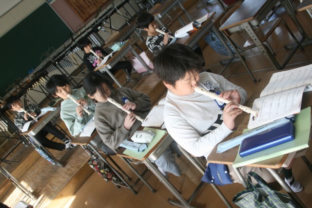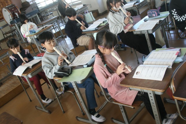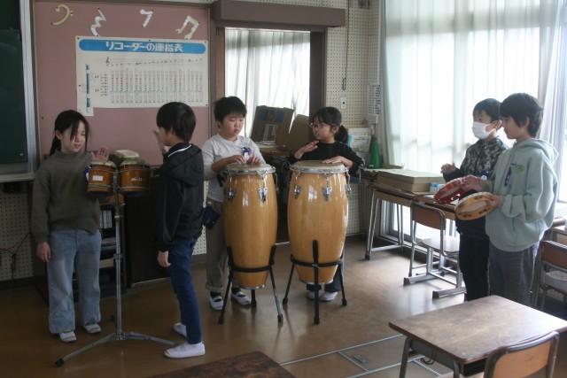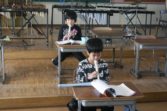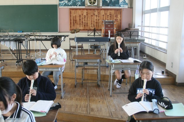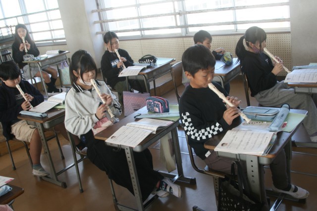 カルーヨ(4の1) 公開日 2025/11/19 更新日 2025/11/19 4年生 4年生の音楽の時間・・・「カルーヨ」を演奏しました。ボリビアの民族音楽で、悠久のアンデスを感じさせる曲ですね。リコーダーと打楽器で合奏しました! +5