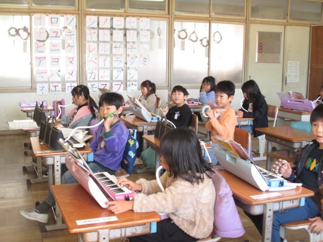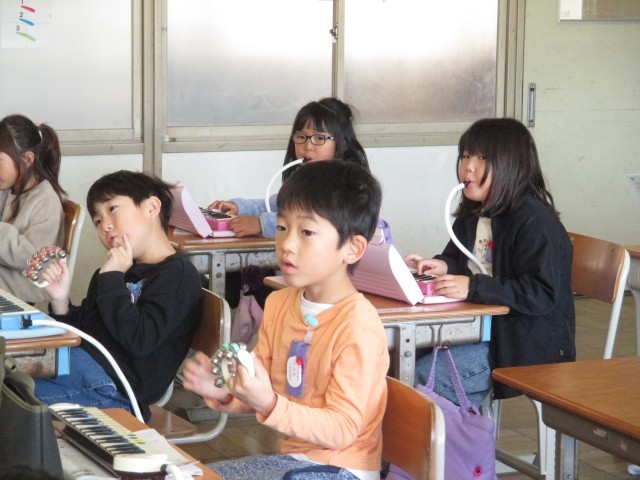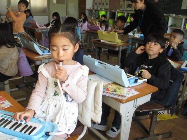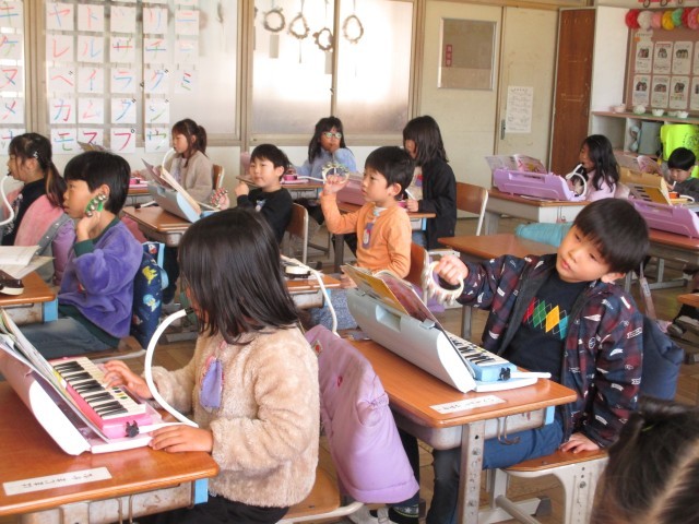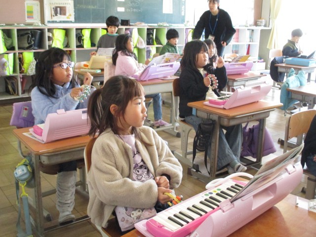 リズムに あわせて(1の2) 公開日 2025/11/20 更新日 2025/11/20 1年生 「すずめが ちゅん」の きょくを けんばんハーモニカで えんそうしました。すずで リズムうちも しました。かしにあわせて、すずの ならしかたを かえて いました。ならしかたで おとの かんじも ちがいますね。きづいたかな? +6