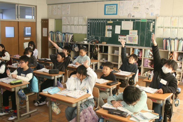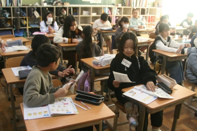 What do you want?(4の2) 公開日 2025/11/20 更新日 2025/11/20 4年生 お店に行って、欲しいものを手に入れるための会話の練習をしていました。A:What do you want? B:I want ~ please.A:How many?B:( )please.A:OK!リスニング練習では、どの子が、どんなパフェを食べたがっているのか、聞き取っていました。 +5
