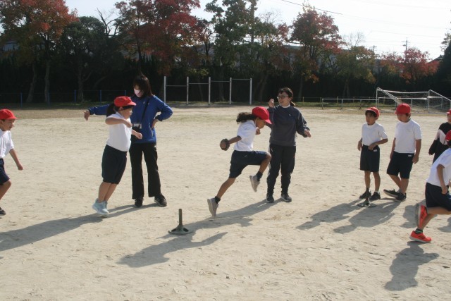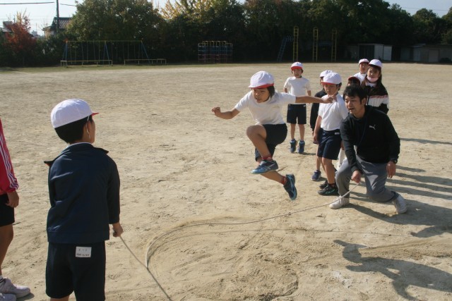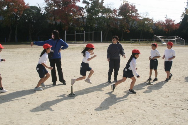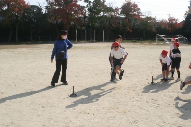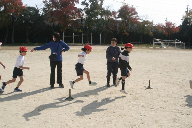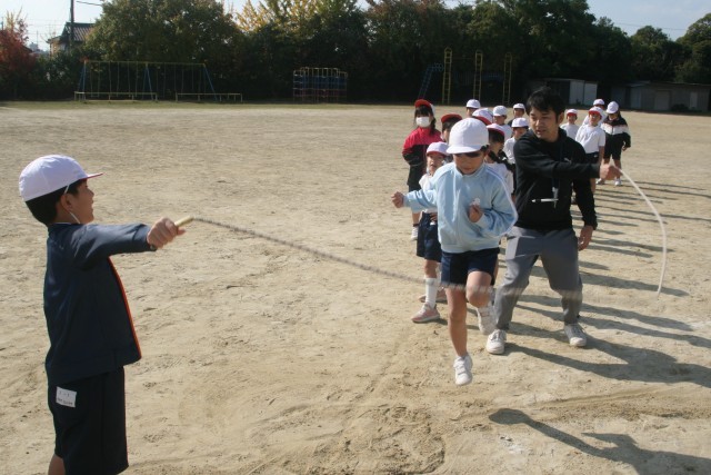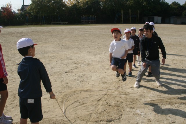 2組は縄を使わずに、走るコース・跳ぶ位置・タイミングを練習していました。