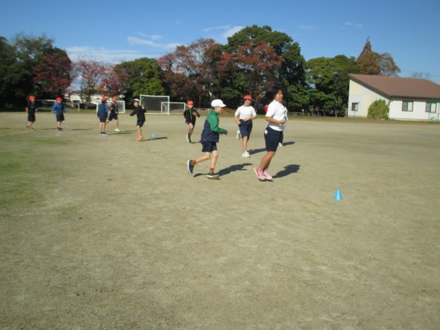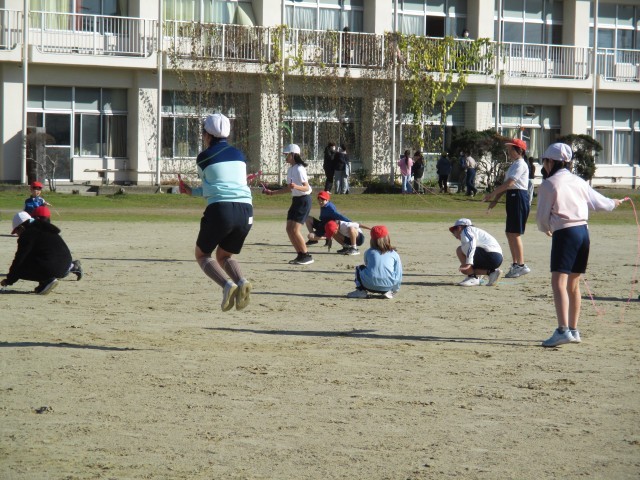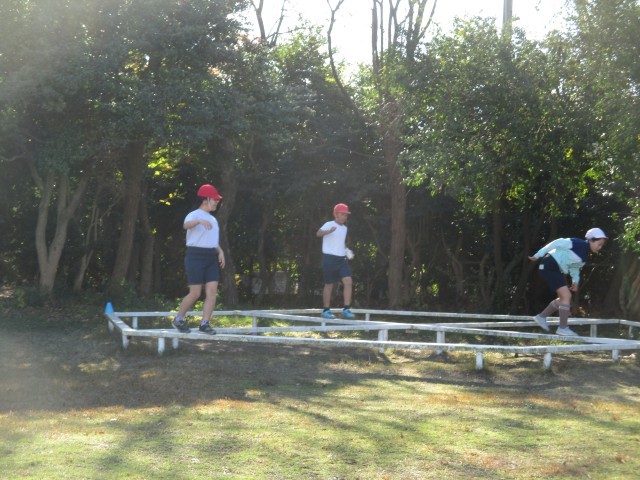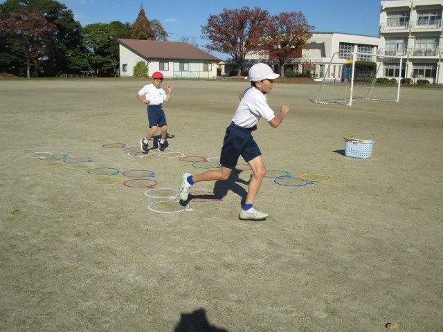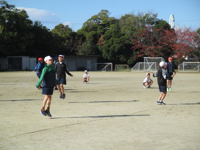 短なわとびの練習の後は、サーキットトレーニングで体力づくりです。