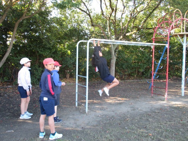 遊具を使って、体のさまざまな筋肉を動かしながらトレーニングをしました。